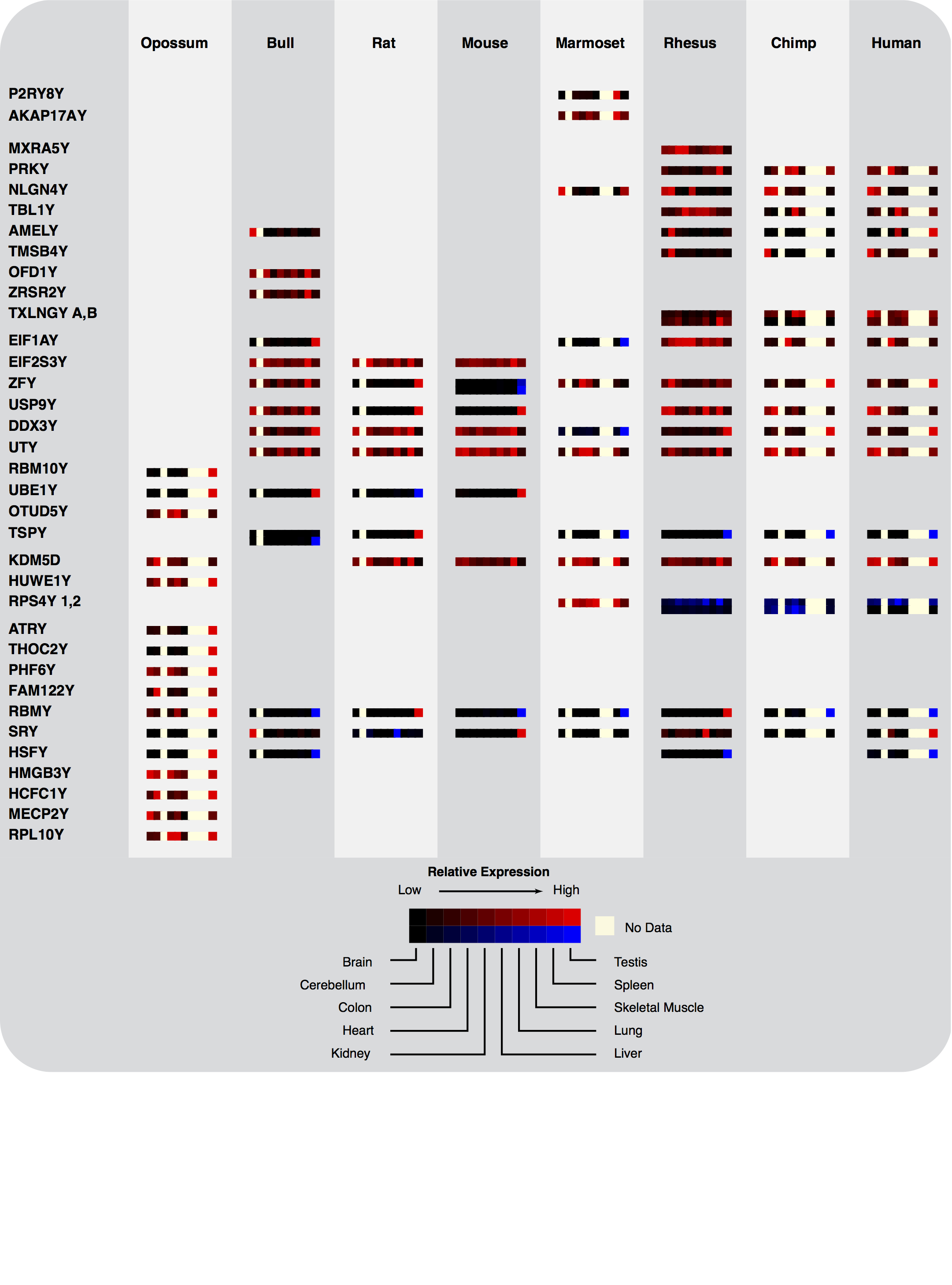 Expression of Y-linked genes across tissues and species