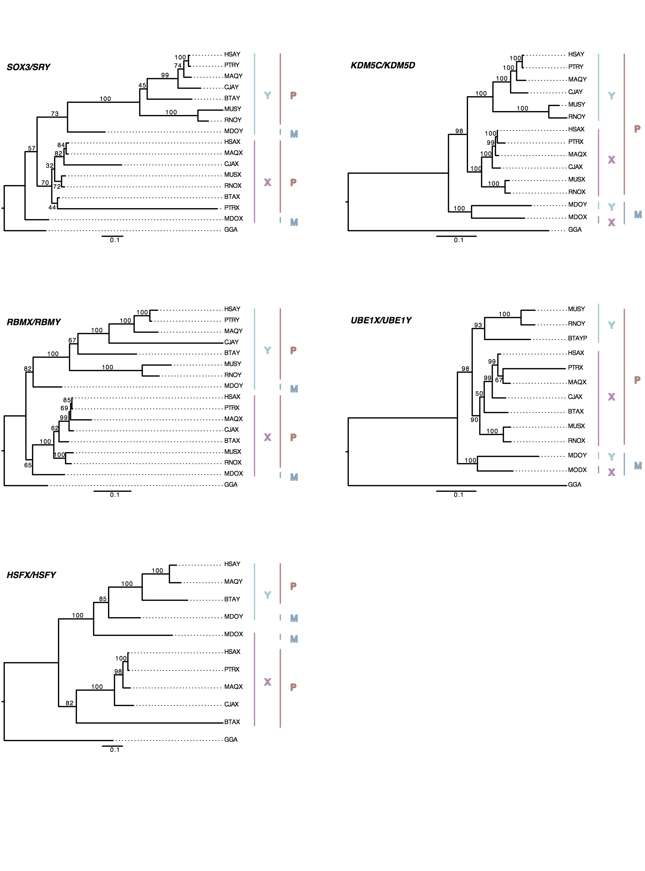 Phylogenetic analysis of stratum one and stratum two genes