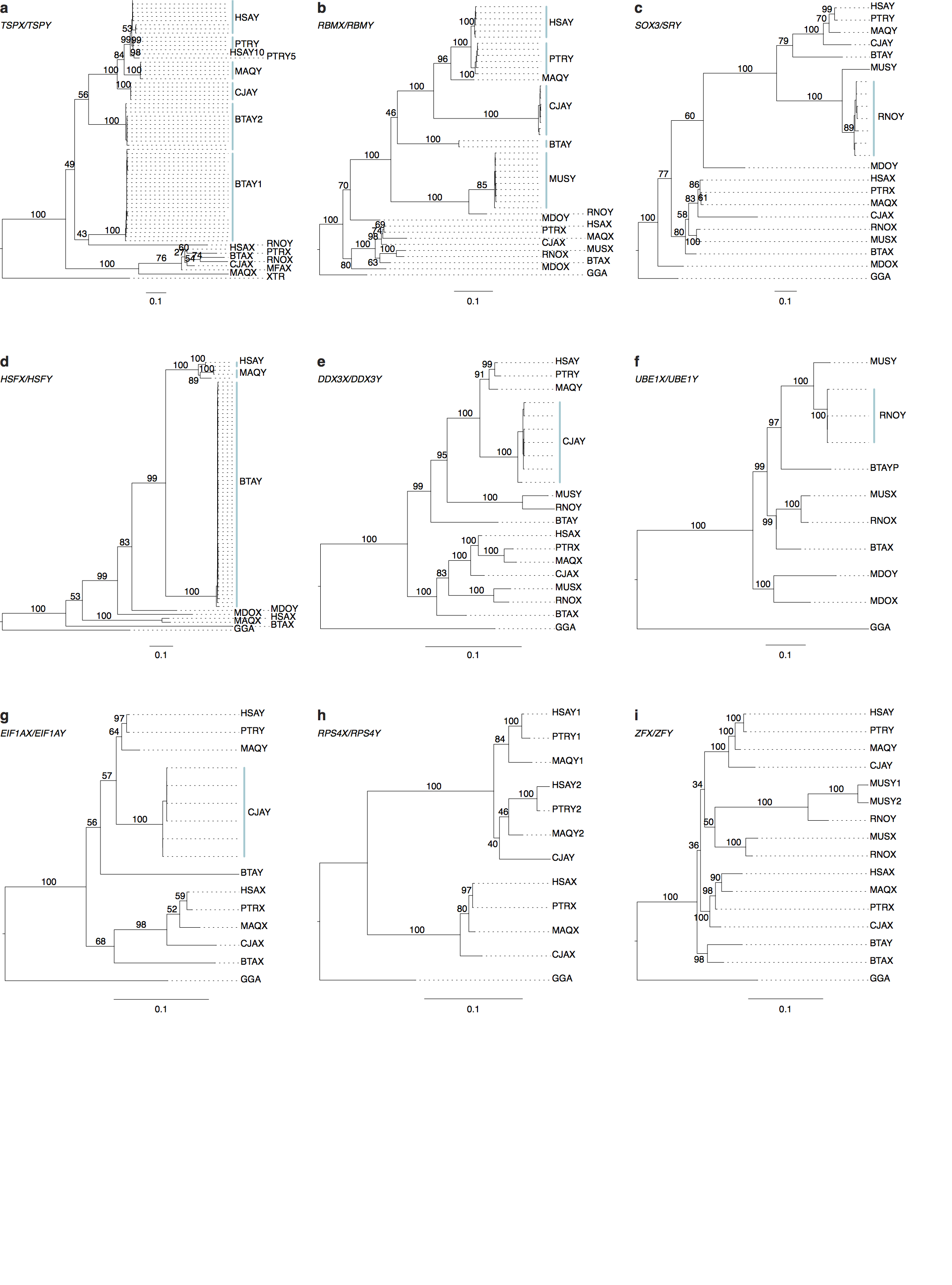 - (5a) Branch lengths for multi-copy and single-copy X-Y pair genes