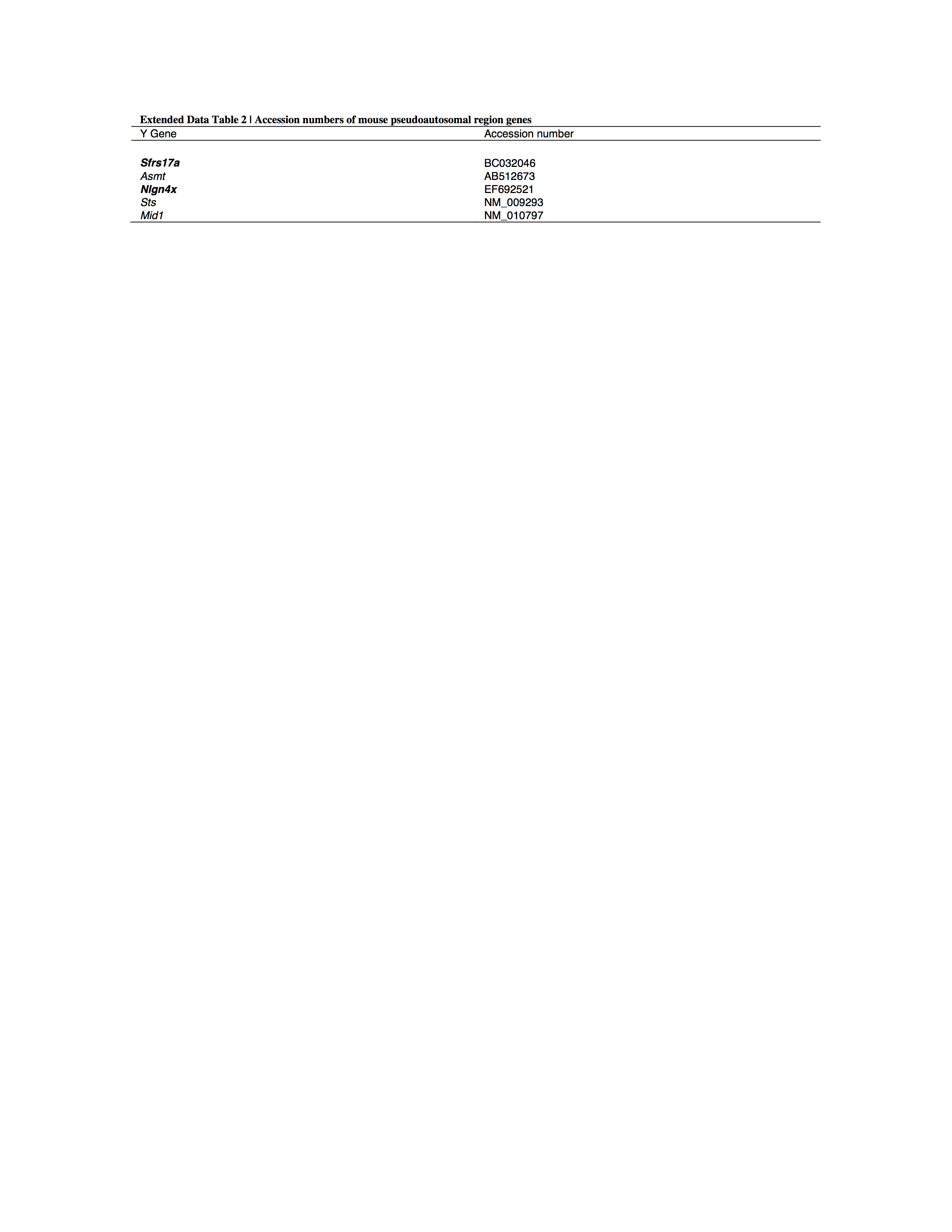 Accession numbers of mouse pseudoautosomal region genes