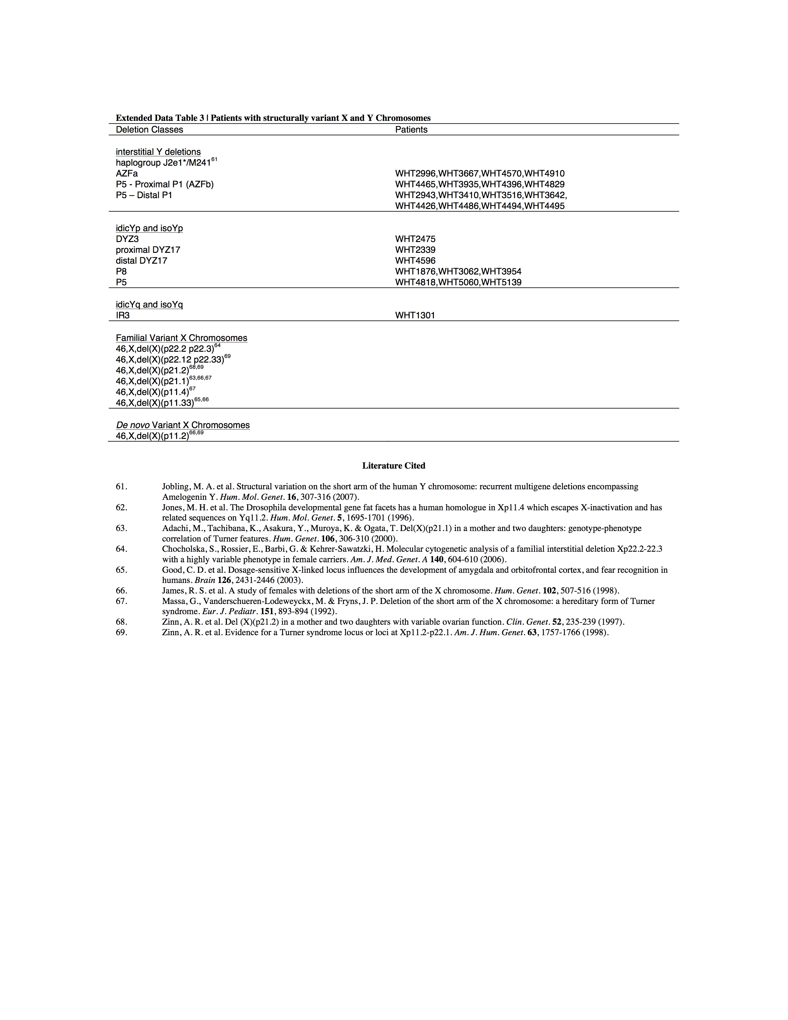 Patients with structurally variant X and Y Chromosomes